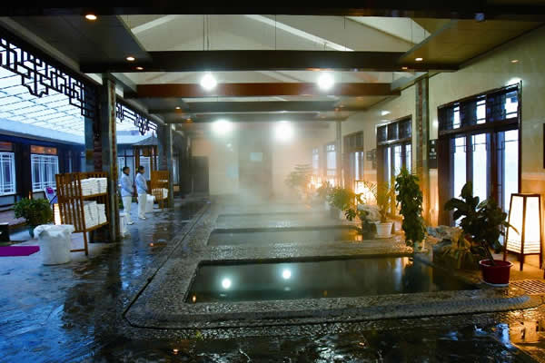 溫泉區(qū)的右方,集中了六個(gè)特色小溫池“六福湯”,這里能讓您感受到人參、蘆薈、靈芝、當(dāng)歸、薄荷、艾葉三丫苦六種溫泉的神奇魅力和中醫(yī)藥文化的博大精深。溫泉的理療作用已補(bǔ)越來越多的熱愛健康的人士所接受,能起到舒筋活絡(luò)、強(qiáng)身健體、潤夫養(yǎng)顏、安神、抗衰老等保健作用。隨著人們生活水來的提高的旅游觀念的發(fā)展,溫泉休閑旅游已成為一種時(shí)尚。