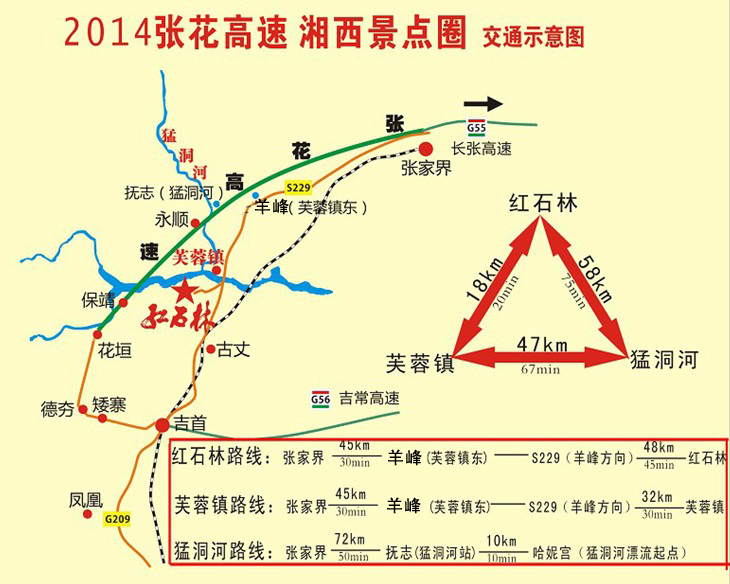 張花高速湘西景點(diǎn)圈交通示意圖