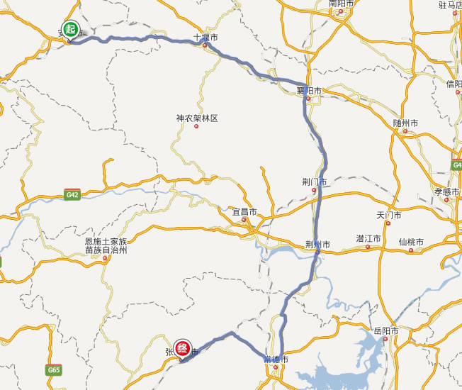 左右,沿途經過安康——十堰——襄陽——荊門——荊州——澧縣——石門縣——慈利縣——張家界市。