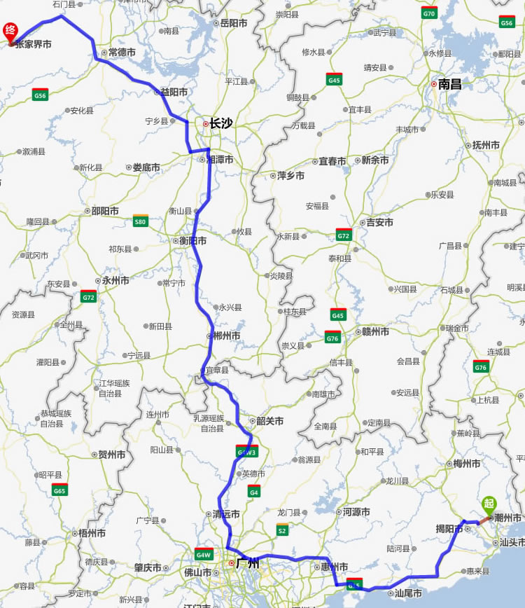 現(xiàn)在位置:張家界旅行社->交通指南->自駕車路線 -> 潮州到張家界旅游自駕車線路,潮州去張家界自己開車要多長時(shí)間,有多少公里