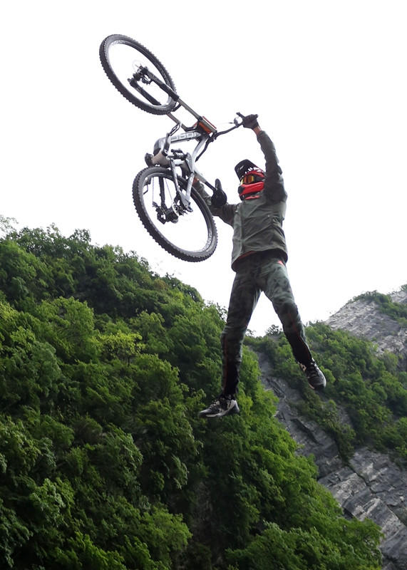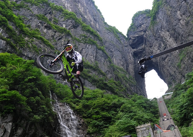 張家界天門山天門洞,999級臺階,以39°斜坡筆直往下,看一眼都覺得眩暈。如果有人騎著山地車一路沖下來,你一定會說“瘋了!”。 2015年,來自8個國家和地區(qū)的15位頂級速降高手在天門山天門洞999級天梯進行了一場超瘋狂的天梯速降賽比拼。由于賽道過于驚險,15名經驗豐富的參賽選手有9人受傷無奈退賽。賽事裁判長戴夫說:“這是我從事裁判工作8年以來,見過的‘最瘋狂’的賽道,所有選手的表現都非常不可思議!边@場世界最高水平的自行車速降職業(yè)賽事瞬間讓世界聚焦中國,外網比賽視頻平均點擊率超過400萬。而999級天梯作為世界上唯一一條純臺階的速降車道更是成為了世界山地車圈熱議的焦點,更激發(fā)了更多高水平車手來此挑戰(zhàn)的欲望。