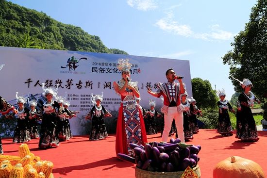 7月29日上午9點30分,由張家界市人民政府主辦,張家界市委宣傳部、市旅游和外事僑務委員會、市文體廣電新聞出版局、武陵源區(qū)人民政府承辦,黃龍洞景區(qū)協辦的“絕版張家界,最炫民族風”張家界民俗活動月第三場活動在黃龍洞景區(qū)啟動,F場以土家人慶祝豐收的鼓舞拉開序幕,土家鼓舞歡悅的節(jié)奏,夸張的舞姿開場就吸引了幾千游人和當地人觀看。草根夫妻檔歌手,張家界“山水組合許勇、舒維亮麗的服飾,野性的嗓音……”以一首《我在高山唱》歌曲,征服現場游客,贏得雷鳴般的叫好聲。